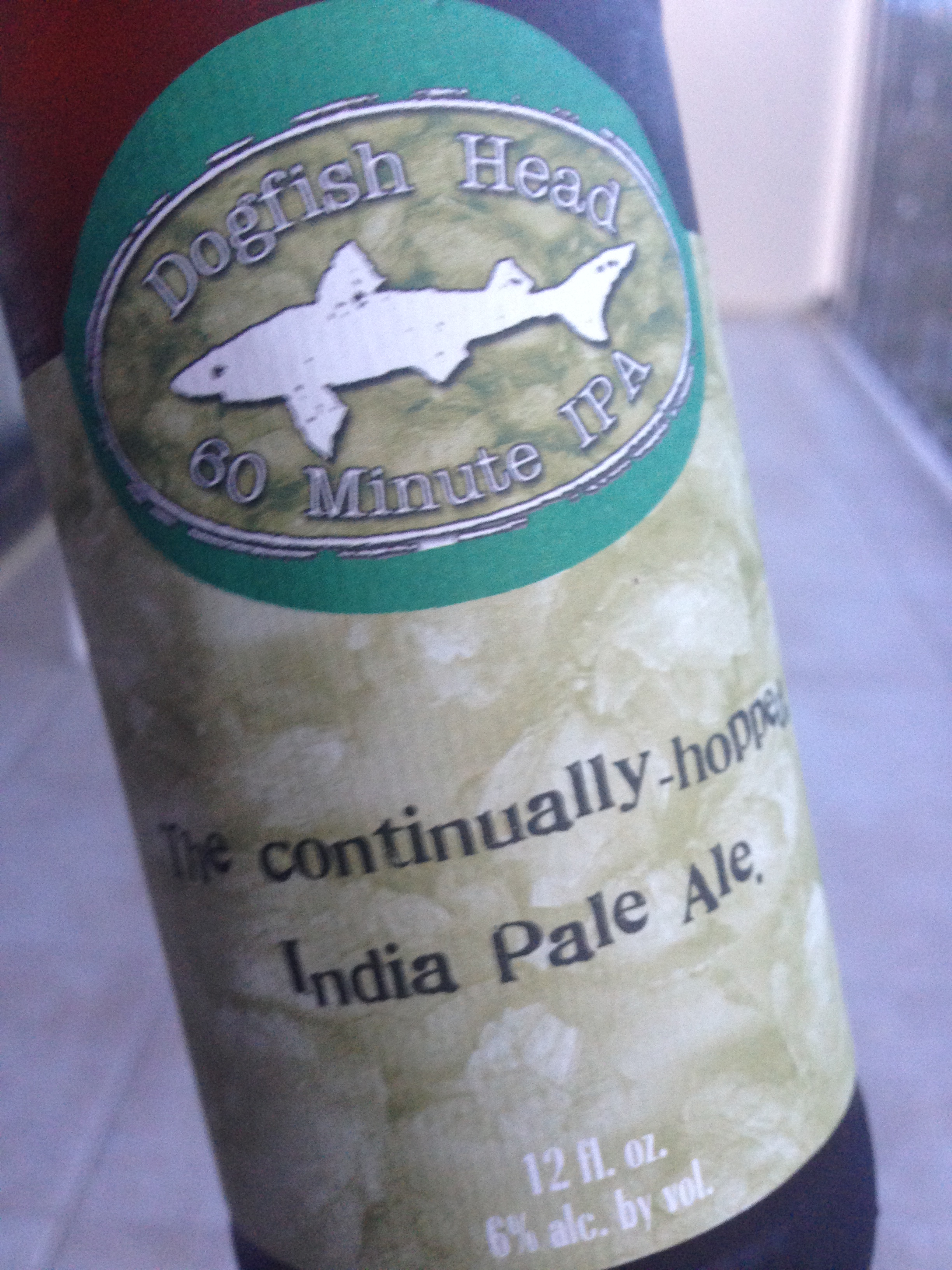 IMG_3553A few days went by and I drank down the stocks of my other beers: some damn fine ones as it turned out. The issue had to be confronted: I thought slow and took out the Dogfish Head bottles. I polished a particularly bulbous ‘70s wine glass, not ideal, but it would have to do. I prepared the seat and low table on the balcony overlooking the sea. I got my book. And I cracked open the crown. The 60 minuter first. As you’d expect from a beer so doped on humolone, the head was effusive, abundant. It was tight too and Honiton lace, you know, the sort that old doilies were made from, was left down the inside of the glass as I drank. The colour was mid gold; but how to describe the aroma? Volatile, fresh, profuse, intense: it raced out of the bottle-neck even before pouring. It was spicy and resinous and quite three dimensional – the dimensions of taste that is. The first taste was zippy and fresh; here now a grassy hoppiness. Across the mid palate was the spiciness and the lingering finish was bitter, quenching, not astringent but actually smooth and rounded. Maybe this is my palate, but I’ve found the same phenomena with other highly hopped beers (Stone Ruination for one): an expectation of being undrinkable (unfinishable is more accurate perhaps) but the opposite is true – providing there is a strong malt backbone, the beers are highly drinkable and surprisingly balanced. Yet for all that, at 60 IBU and 6%, it’s still a half brick in a hop pillow.